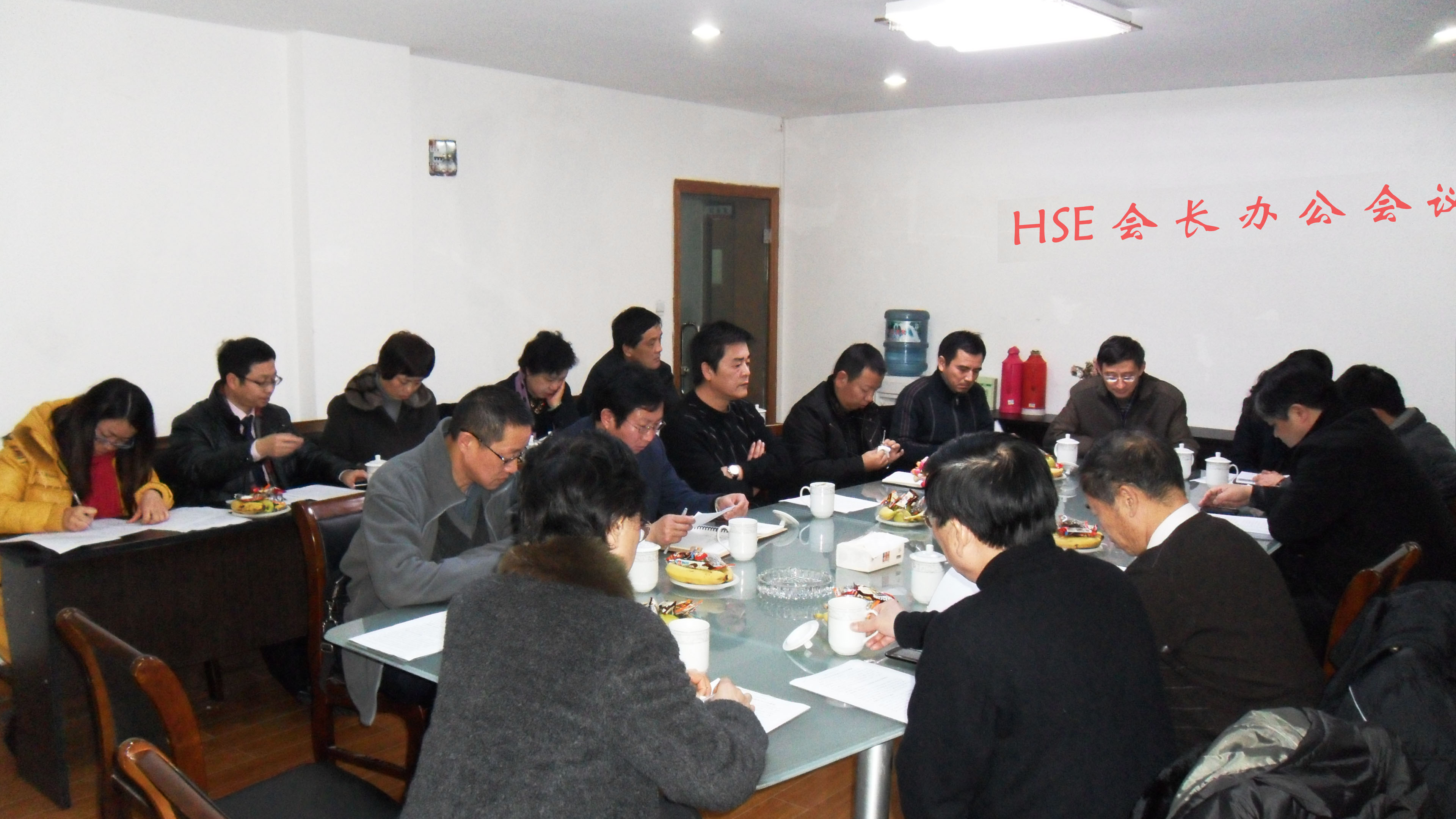 2012年12月27日下午,上海市金山区HSE学会召开会长办公会。学会会长黎云根、区安监局局长孙引良、区环保局局长吴克源、区消防大队防火监督处处长谢佳 、区质监局副局长钟光明、区水务协会会长赵慈文、中石物流总经理谢林昌、众达公司周总、汽摩配顾总经理、华锋超纤安环经理董雨海、赛科安环部李荣、久宙化工办公室主任黄跃进、学会秘书长蔡东升、副秘书长程维新、副秘书长许冬妹、年鉴负责人薛毓良,参加了会议。