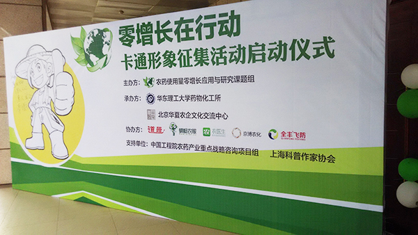 在2015年农业部发布了关于2020年农药使用量零增长的行动计划后,农业部农药使用量零增长应用与研究课题组发起举办“零增长在行动”的系列农药知识科普型公益活动。华东理工大学是系列活动的第一站。在启动仪式上,主办方介绍了征集活动的内容、奖项设置以及参与方式等信息,并在最后全体成员一起宣读活动宣传语“农药零增长,我们在行动!”