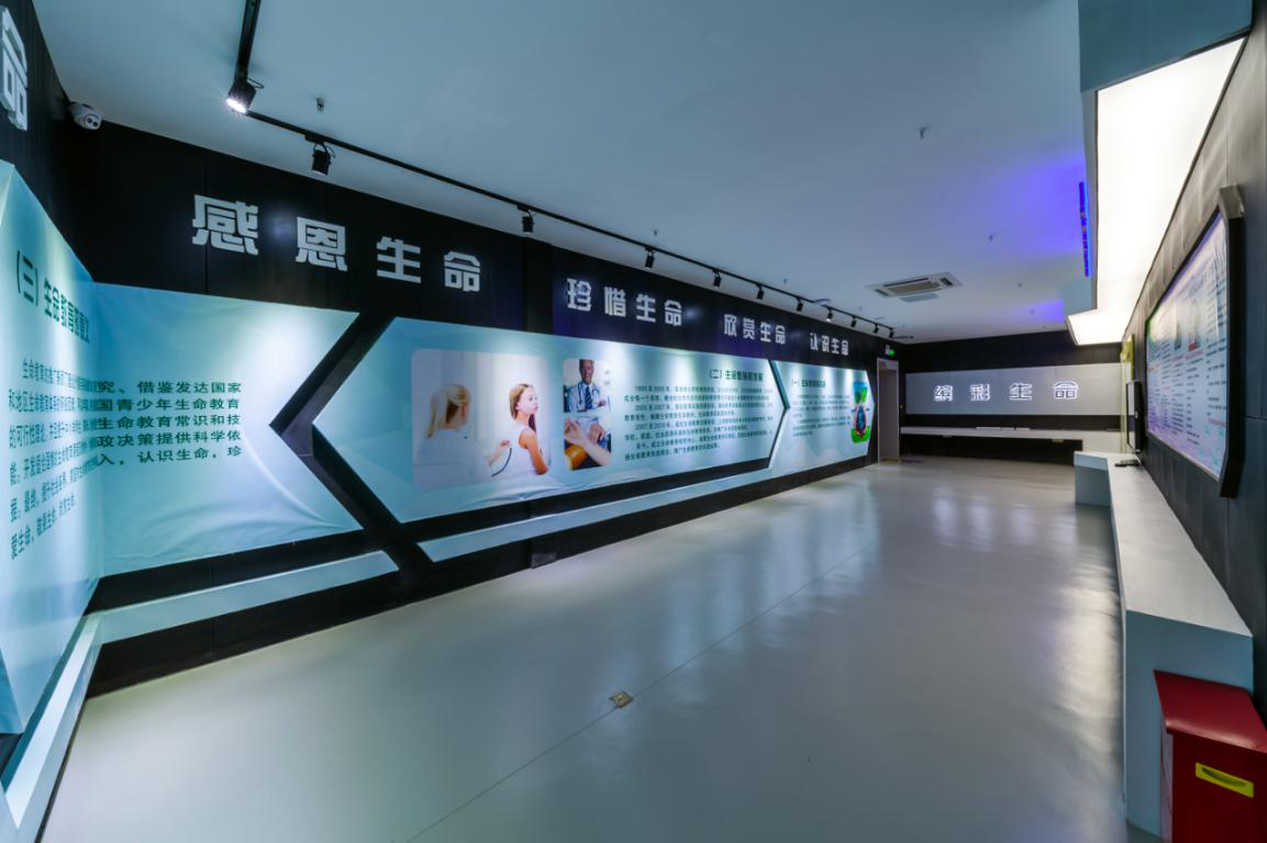 此展厅介绍的是感恩生命的相关内容。展厅设置了巨型电子触摸屏,游客们可以在这里体验生命健康小游戏、动感单车点亮生命之树等活力十足的人机互动,引导游客们对生命健康教育产生全新的感悟。