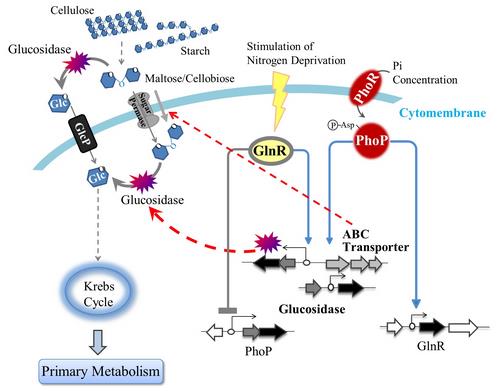 研究显示,放线菌GlnR不仅能够调控氮代谢,还控制着non-PTS碳源的ABC(atp-binding cassette)转运系统。GlnR可以根据细胞的营养状态,通过整合氮信号介导氮代谢和碳代谢的相互作用。这是首次在放线菌中系统描述GlnR介导的碳水化合物代谢调控。