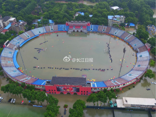 2016年7月6日,湖北武汉再次遭遇了100毫米以上的强暴雨袭击,部分街道被洪水淹没,多个区路段瘫痪。其中新华路体育场由于灌水严重,昔日体育场俨然成了“浴缸”。