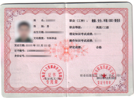 HSE三级(高级)督查员:培训费1900元 鉴定费300元 总计2200元