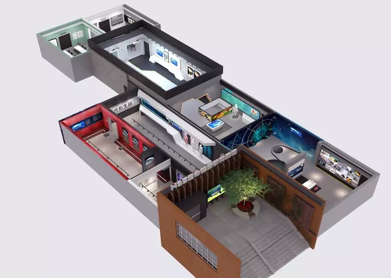 整体以现代工业风为主,融入生命之花元素设计符号,打造出时尚现代而又不失深厚文化底蕴的现代化科普馆。在设计中充分考虑功能上的需求,合理科学地布置平面及交通流线,以国际化、现代化、绿色化、学院化为主要原则,充分考虑现代科普馆的特点和需求,融入绿色、节能、环保、智能化等可持续发展的设计理念,打造出一个高科技的专题科普馆。