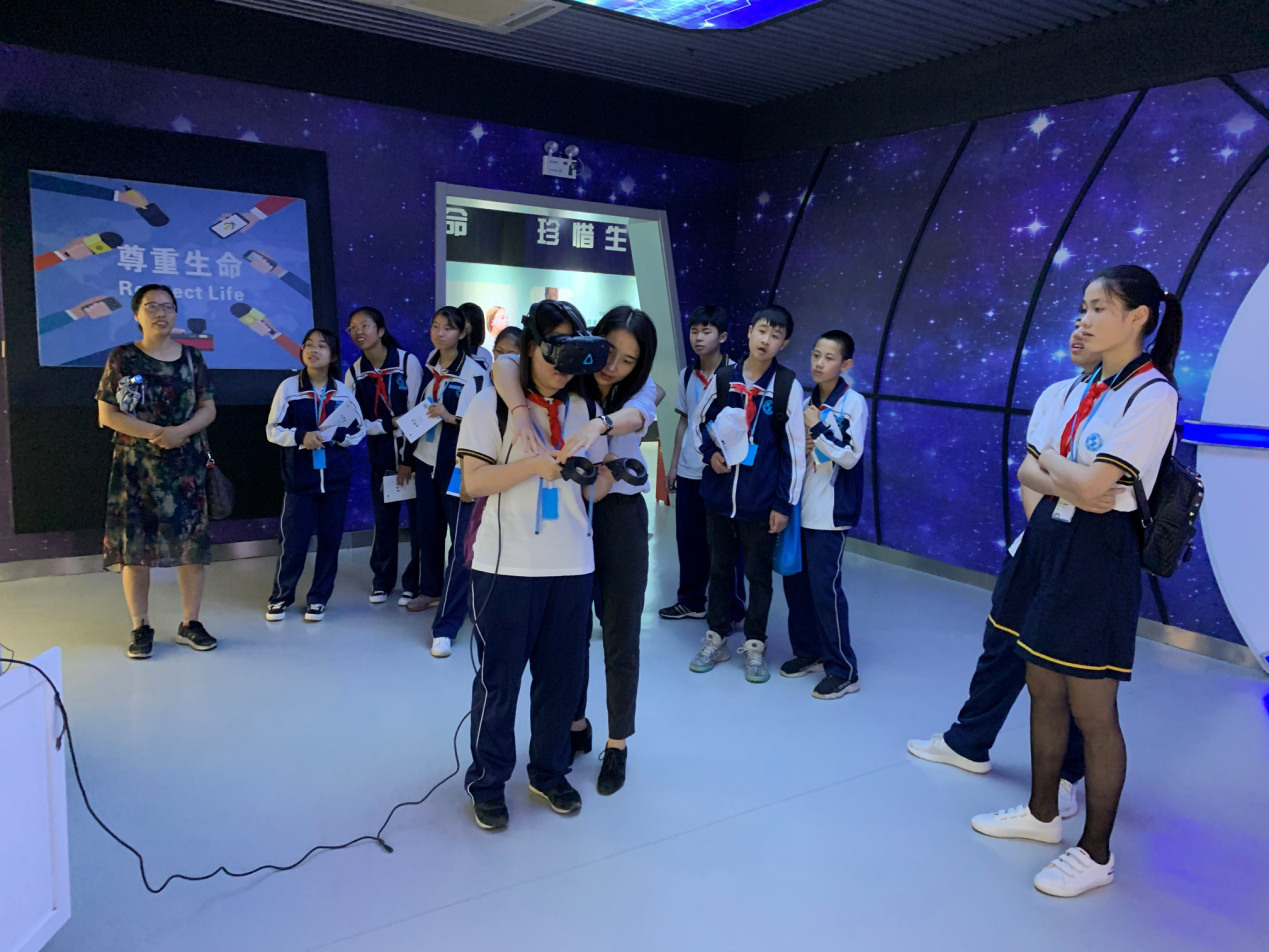 在这样的大背景下,上海泽达学院策划了“感恩生命,呵护心灵”项目,为金山区中小学生开展生命的课外教育。本项目依托坐落于金山区海边的“HSE生命健康教育科普馆”,与“三生”教育有机结合,即“生命健康、生存安全、生活环保”,提升青少年生命健康意识及心理素质。科普馆以生命周期为一根主线,划分7大模块,分别是生命孕育、认识生命、尊重生命、珍惜生命、感恩生命、感悟生命,健康小屋。每个模块均以互动体验和实践操作的方式进行教育,有AR、VR、MR、光影等多种科技手段支撑和动感单车、生命巡回、游戏竞赛、CPR&AED等实操环节。